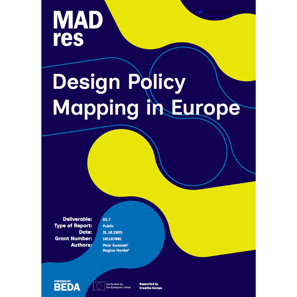I’m pleased to share the European Design Policy Mapping report, produced by BEDA (the Bureau of European Design Associations) as part of their Creative Europe funded project MADres. It’s been a privilege to lead this study and to work with colleagues across Europe to create the most comprehensive yet, continent-wide picture of how design features in national policy documents.
