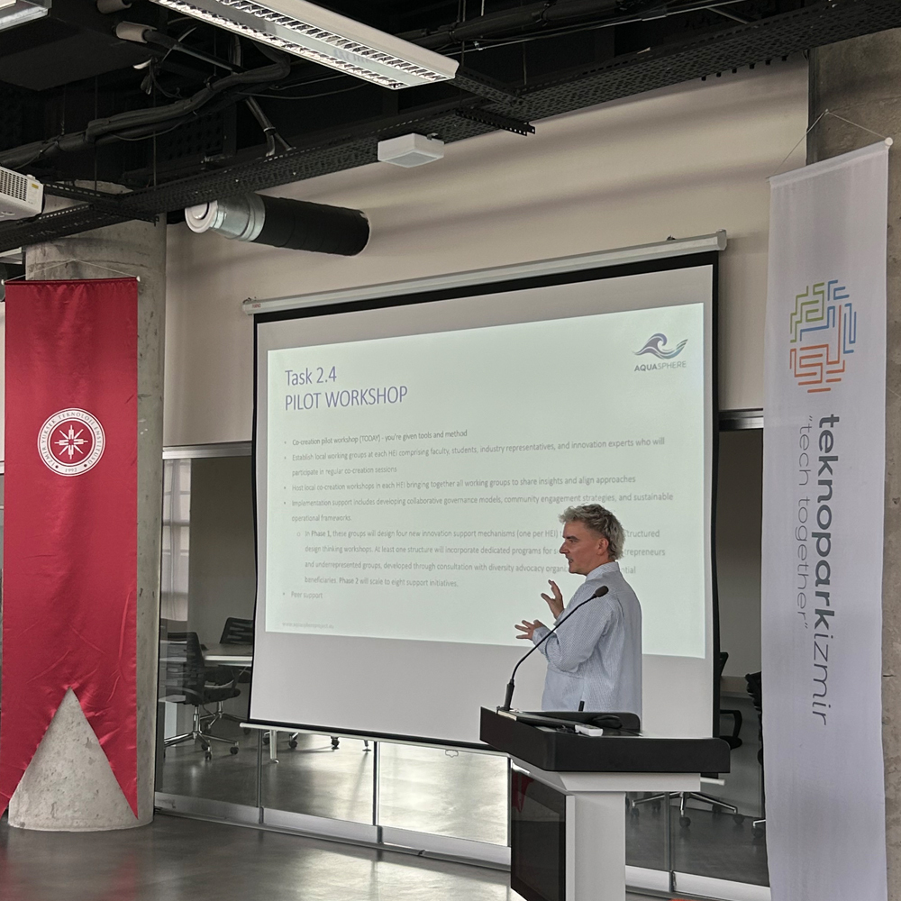 In November, Piotr Swiatek, Design Policy & International Projects Manager, and Olivia Goonatillake, Design Innovation Specialist, joined our AquaSphere partners in Izmir, Turkey, for the project’s second Peer Learning Event. AquaSphere is a Horizon Europe initiative that empowers higher education institutions (HEIs) to lead the way in water and maritime innovation—and we’re proud to play a part in that mission.